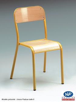 CHAISE EMPILABLE assise et dossier encastrés multiplis hêtre vernis naturel Piètement tube finition epoxy T6
