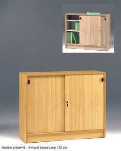 H.950 - L. 1200 - prof. 450 Portes coulissantes avec serrure 4 tablettes réglables (2x2) avec séparation verticale Piètement auto-portant encastré 4 vérins - Plinthe avant démontable coloris : Aulne naturel, Tifany beige, Maryland clair ou Hêtre naturel